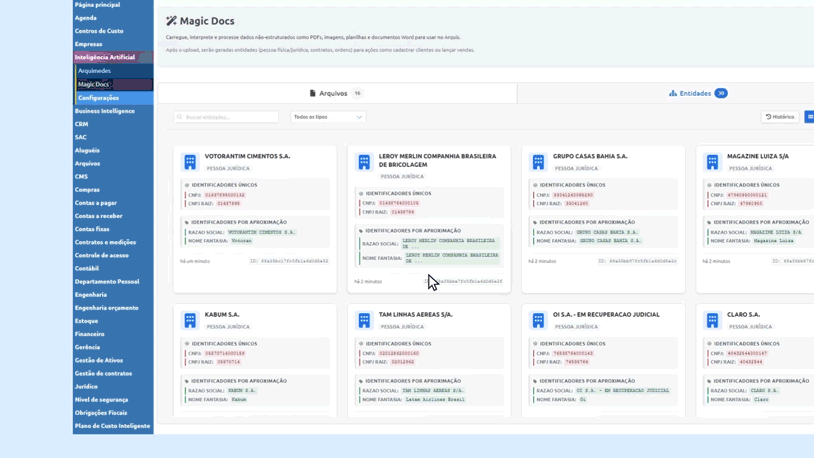 Um dos grandes diferenciais do Magic Docs é o enriquecimento de dados. Não basta apenas extrair as informações dos documentos: o sistema vai além, buscando dados externos para complementar, validar e garantir que os cadastros estejam sempre completos e corretos.